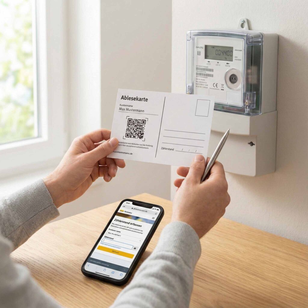 - Response-Optimierte Karten: Wir drucken Ablesekarten mit vorpersonalisierten Feldern oder QR-Codes, die den Kunden direkt zur Online-Eingabe führen.