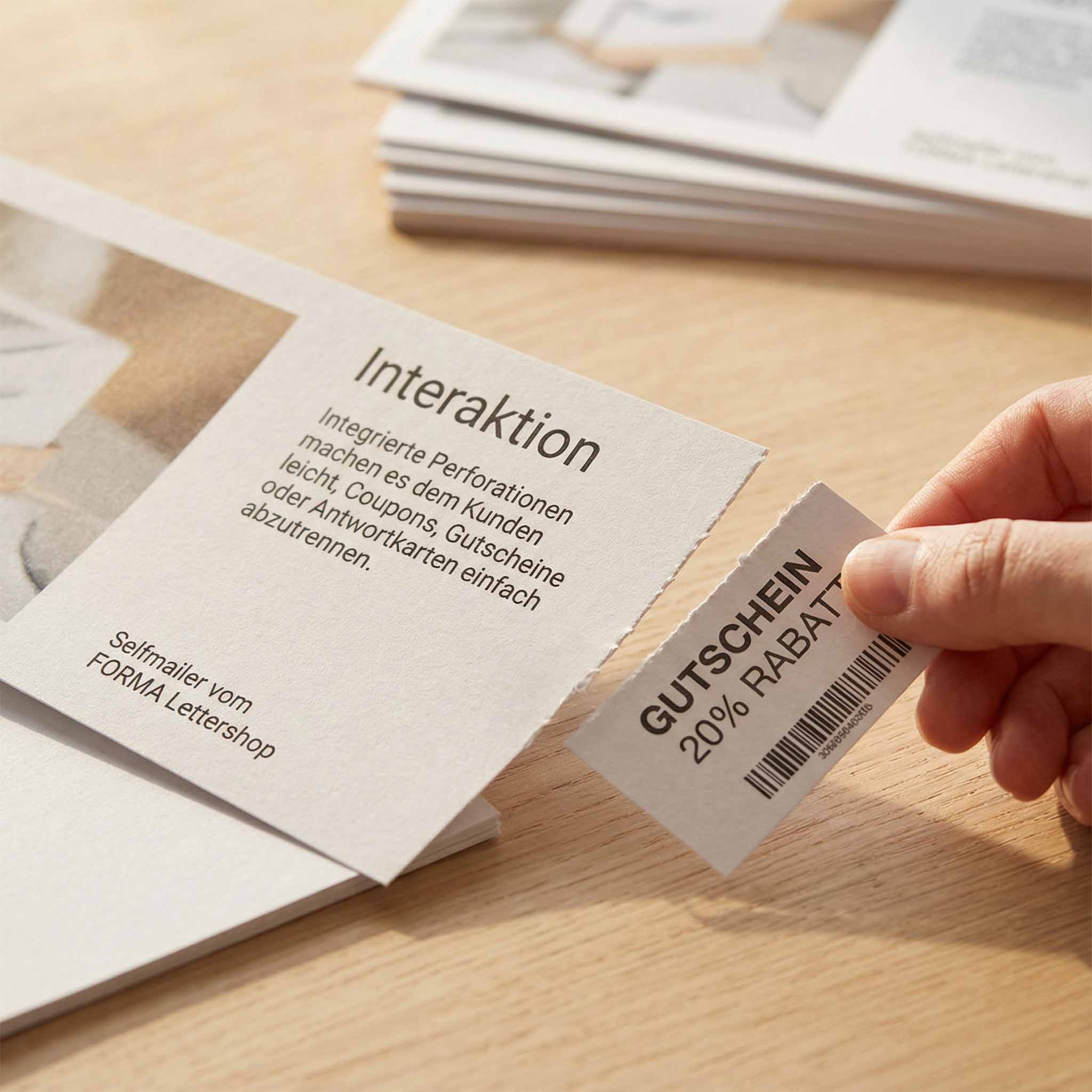 Integrierte Perforationen machen es dem Kunden leicht, Coupons, Gutscheine oder Antwortkarten einfach abzutrennen.