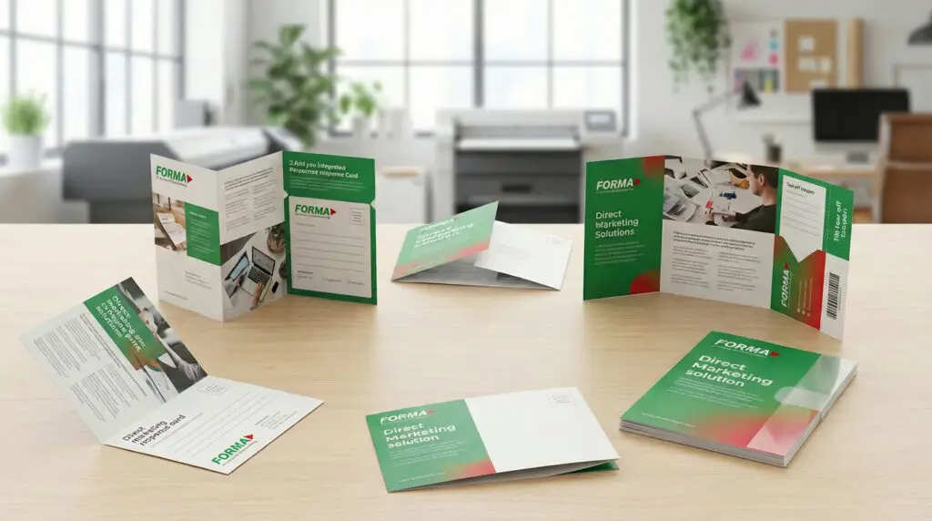 Veredelung: Wir integrieren Antwortkarten oder veredeln das Papier so, dass es trotz fehlendem Umschlag den Postweg unbeschadet übersteht.